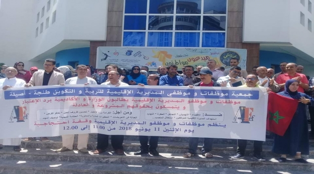 ونظمت جمعية موظفات وموظفي المديرية الإقليمية للتربية والتكوين، بعمالة طنجة أصيلة، وقفة احتجاجية أمس، الإثنين، ضدا على سياسة "اللامبالاة" التي تنتهجها المديرة الإقليمية، بشأن مطالب الجمعية المشروعة والعادلة من بينها تحسين ظروف العمل وضمان حماية وأمن الموظفين وصون كرامتهم، وتامين فضاء للصلاة ومقصف خاص بالموظفين، إلى غير ذلك من المطالب التي رفضت المديرية الإقليمية الاستجابة لها.