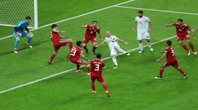 حقق المنتخب الإسباني فوزه الأول بالمونديال وذلك بعد اطاحته بالمنتخب الايراني بهدف وحيد في اللقاء الذي جمع الفريقين مساء اليوم الاربعاء على ارضية " ملعب كازان أرينا " ضمن مباريات الجولة الثانية من دور المجموعات .