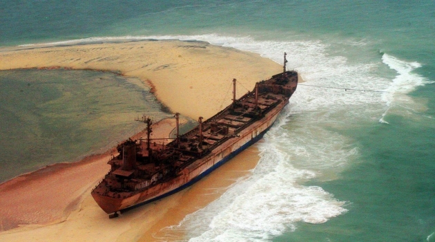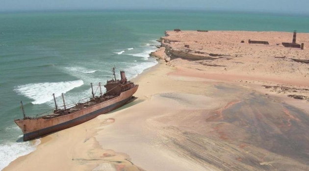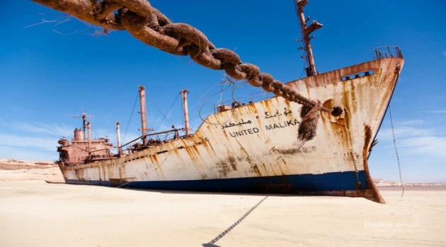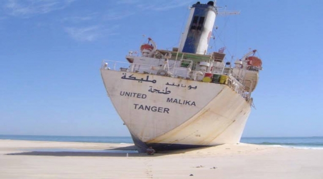“مليكة يونايتد (طنجة)”، السفينة المغربية التي تم التخلي عنها سنة 2003، بعدما جنحت إلى شبه جزيرة "رأس نواذيبو" على الحدود المغربية الموريتانية.