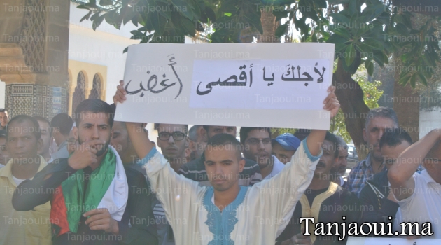 شارك العشرات من المصلين، اليوم عقب صلاة الجمعة، في وقفة احتجاجية تضامنية أمام مسجد طارق ابن زياد "السعودي" بحي كاسبراطا - طنجة للتنديد بسياسة تهويد فلسطين، والاعتداء على المسجد الأقصى المبارك من قبل الكيان الصهيوني الغاصب .