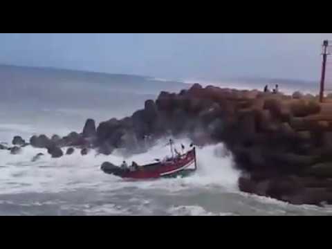 وكان بداخل القارب ثلاثة بحارة، نزلوا إلى البحر بعدما تحطم قاربهم بسبب الرياح القوية التي جرفته ليرتطم بصخور الميناء.