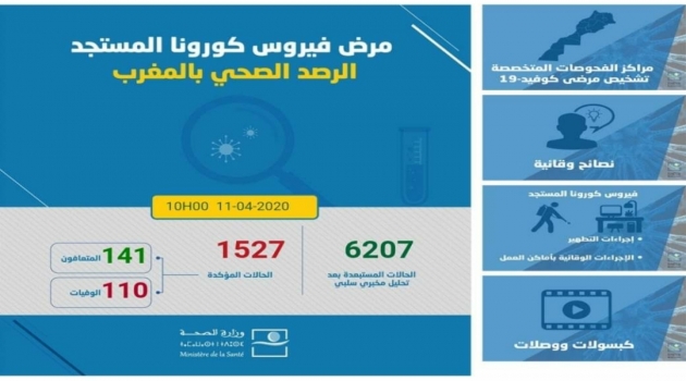 وحسب ذات النصدر، فقد ارتفع عدد المتعافين الى 141 حالة، فيما عدد الوفيات فقد لستقر في حدود 110 حالة وفاة.
