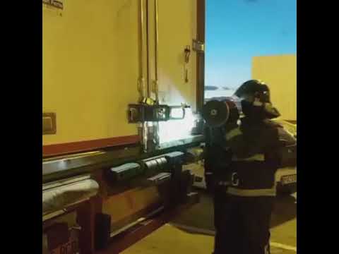 وفور تلقى الاشعار، انتقل إلى عين المكان ثمانية عناصر من رجال المطافئ وثلاث سيارات لاخراج الشابين من داخل الشاحنة باستعمال أدوات خاصة لفتحها.