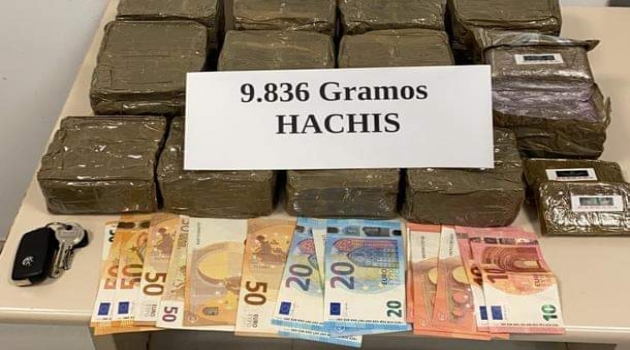 بعد ذلك، تدخلت الشرطة لمعرفة ما تحمله الأكياس وتبين أنها محملة بالمخدرات، حيث صادرت9,8 كلغ من مخدر الحشيش، موزعة على شكل 12 لوحة، ومبلغ 500 يورو نقدا وهواتف و سيارة.