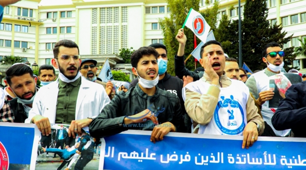 بعد المسيرة الوطنية الأخيرة التي خاضتها "التنسيقية الوطنية للأساتذة الذين فرض عليهم التعاقد"، بالرباط، تحولت الوقفة التي دعت الجامعة الوطنية للتعليم-التوجه الديمقراطي، ، اليوم الجمعة (9 أبريل)، أمام مقر ولاية جهة طنجة تطوان الحسيمة، إلى مسيرة.