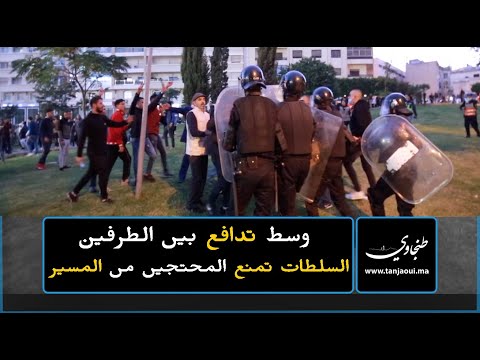 منعت السلطات الأمنية المحتجين بطنجة من المسير، بعد اختراق مئات منهم للسياج الأمني المحيط بهم، ومحاولة المسير من ساحة الأمم ( مكان الوقفة الاحتجاجية) في اتجاه كورنيش طنجة.
