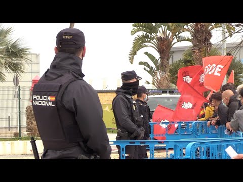 احتشد مئات الأشخاص بالقرب من المدرج مطار سبتة المحتلة التركيب بقدوم رئيس الحكومة الاسبانية بيدرو سانشيز.