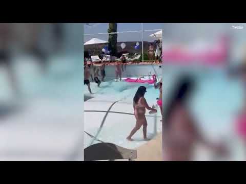 وتم تداول مقطع من الفيديو وثق الواقعة، انتشر على نطاق واسع عبر منصات التواصل الاجتماعي، حبث يُظهر كيف ظهر تصدع كبير في حوض السباحة، نجم عنه حفرة كبيرة، في وقت كان العديد من الاشخاص مستمتعين بالسباحة.