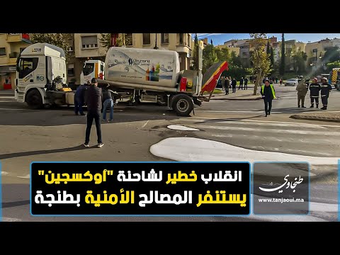 انقلبت شاحنة تنقل كميات كبيرة من الأوكسجين، صباح اليوم الإثنين، بمدار "عين قطيوط" بطنجة، ما تسبب في رعب كبير بعدما ظن مواطنون أن الأمر يتعلق بشاحنة غاز.
