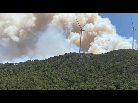 وقالت مصادر محلية إن النيران التهمت مساحات شاسعة واقتربت من محطة توليد الطاقة الريحية