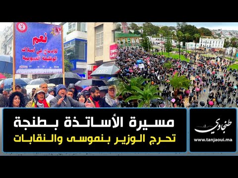 لم تمنع التساقطات المطرية مئات الأساتذة ومهنيي التعليم من التوافد على ساحة الأمم بطنجة للخروج في مسيرة احتجاجية حاشدة، البوم الأربعاء، للتعبير مجددا عن رفضهم النظام الأساسي والمطالبة بإلغائه بشكل عاجل.