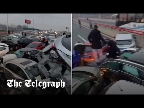 أصيب عدد من الأشخاص إثر اصطدام أكثر من 100 سيارة ببعضها البعض على جزء جليدي من طريق سريع في مدينة سوتشو الصينية، في حادث نجم عن الظروف الجوية القاسية.