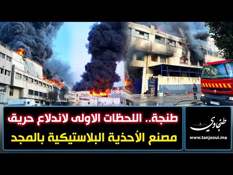 طنجة.. اللحظات الاولى لاندلاع حريق مصنع الأحذية البلاستيكية بالمجد