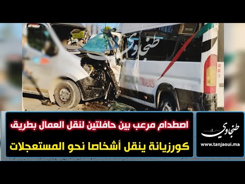 تعرض أربعة أشخاص لجروح خطيرة بعد اصطدام مرعب لحافلتين لنقل العمال بطريق گورزيانة بطنجة، صباح اليوم الخميس.