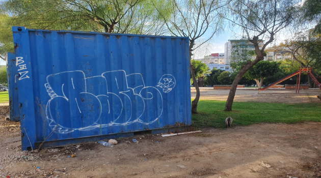 في جانب من هذه، التي يمكن تسميتها حديقة، يوجد مستودع حديدي صدئ منذ سنوات طويلة، ولا أحد يعرف من وضعه هناك ولا لماذا ولا إلى متى، لكنه موجود، وتحته تختفي الكثير من الأزبال والجرذان، التي أصبحت تتسلل إلى المساكن والمتاجر والمقاهي المجاورة.