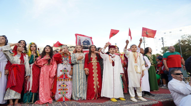 وتحولت ساحة الأمم إلى فضاء للإبداع والاحتفال، حيث قدمت الفرق المشاركة عروضاً فنية ولوحات وطنية أبدع فيها الأطفال والتلاميذ في رسم مشاهد رمزية للمسيرة الخضراء، مزينة بالأعلام المغربية وصور الملكين محمد السادس والحسن الثاني، فيما أبدعت الفرق الفلكلورية في تجسيد التنوع الثقافي من شمال المملكة إلى أقاليمها الجنوبية.
