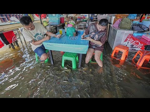 حوّل مطعم "Pa Jit" في ناخون باتوم، تايلاند، الفيضانات إلى تجربة طعام فريدة. بعد 11 يوما على فيضان نهر ثا تشين، باتت الأسماك تسبح بين أقدام الزبائن، ما جذب حشودا متلهفة للمشاهدة والتصوير.