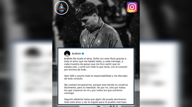 أقرّ اللاعب المغربي الدولي بأن هذه الخسارة ستلازمه لبعض الوقت. وقال في رسالة مليئة بالإحباط والحزن على ضياع فرصة تاريخية على أرضه: "سيكون من الصعب التعافي، لأن هذا الجرح لا يندمل بسهولة". كما أعرب إبراهيم عن امتنانه للدعم الذي تلقاه طوال البطولة، قائلا: "لقد حلمت بهذا اللقب من أجل كل الحب الذي غمرتموني به، وكل رسالة، وكل دعم قدمتموه لي".