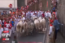 طنجاوي أصيب خمسة أشخاص، اليوم السبت، خلال سباق الثيران السادس ضمن مهرجان سان فيرمين لهذا العام في