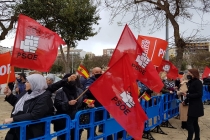 طنجاوي احتشد مئات الأشخاص بالقرب من المدرج مطار سبتة المحتلة التركيب بقدوم رئيس الحكومة الاسبانية